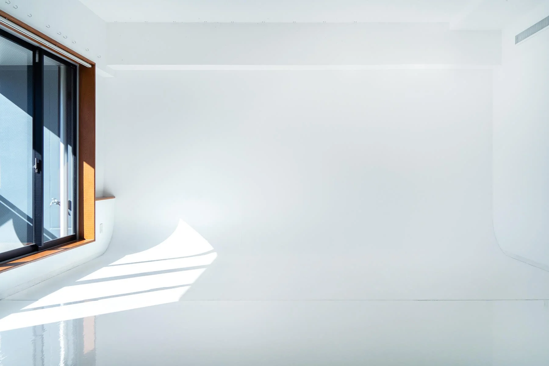 南向きの窓からやわらかな自然光が差し込む、白ホリゾントスタジオです。